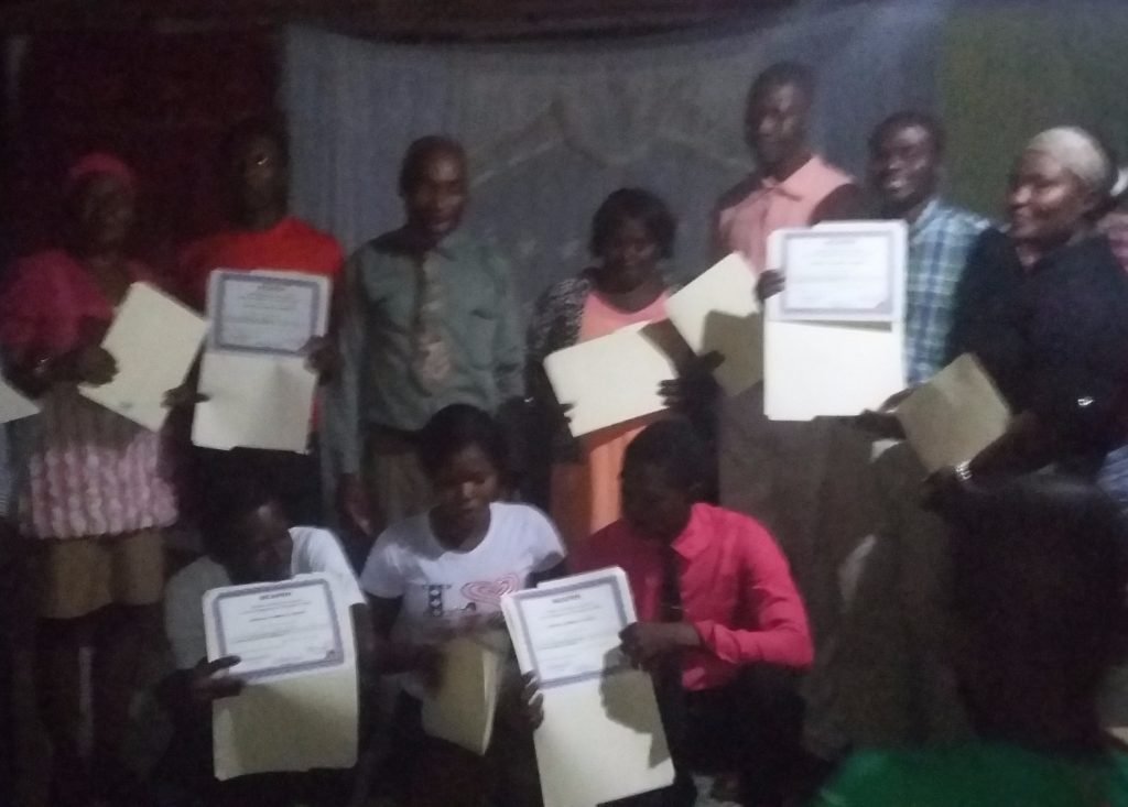 The third picture is of a group who completed a six-week course in Bible studies; although he is kind of hard to pick out, Alix is standing second on the right side. He takes pride in completing this course and taking care of his mom. With the Ministries’ help, they live in a four-room concrete house, nice for that area, not far from where the first picture was taken.